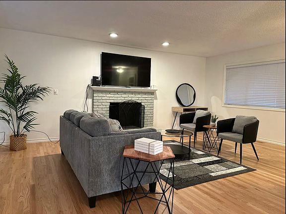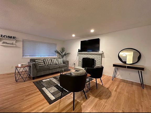 This 5-bed, 3-bath home offers a spacious lower level bonus room, an oversized two-car garage, and a .23-acre lot with beautiful views and large yard for all activities. Recent upgrades through the whole home and luxury vinyl plank flooring, Updated lighting, and modern bathrooms with stylish tilework. The kitchen shines with new cabinets, quartz counters, and stainless-steel appliances. Enjoy cozy evenings by the wood-burning fireplace upstairs. Home also comes with central heating and A/C for year round comfort. Move-in ready and full of charm. No pets allowed