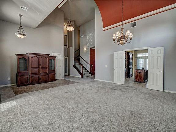 Price Reduced!!! Don't miss this beautiful 4 bedroom, 3 1/2 bath house near great Mustang schools! Downstairs includes a cozy living room opening up to kitchen with dining area, in addition to a second formal living and dining room. The master has a large walk in closet and connects to a large study or flex area with a door to an extra outdoor patio on side of house. Continuing upstairs leads to an open entertainment or game area with 3 spacious bedrooms and 2 full baths, one en suite to bedroom with a unique overlook to living area downstairs. Whether you enjoy entertaining and hosting guests or seeking a comfortable space and floorplan for your family, this house will meet all your needs! New paint in some of the house and a new carpet will be going in (or flooring allowance will be given).