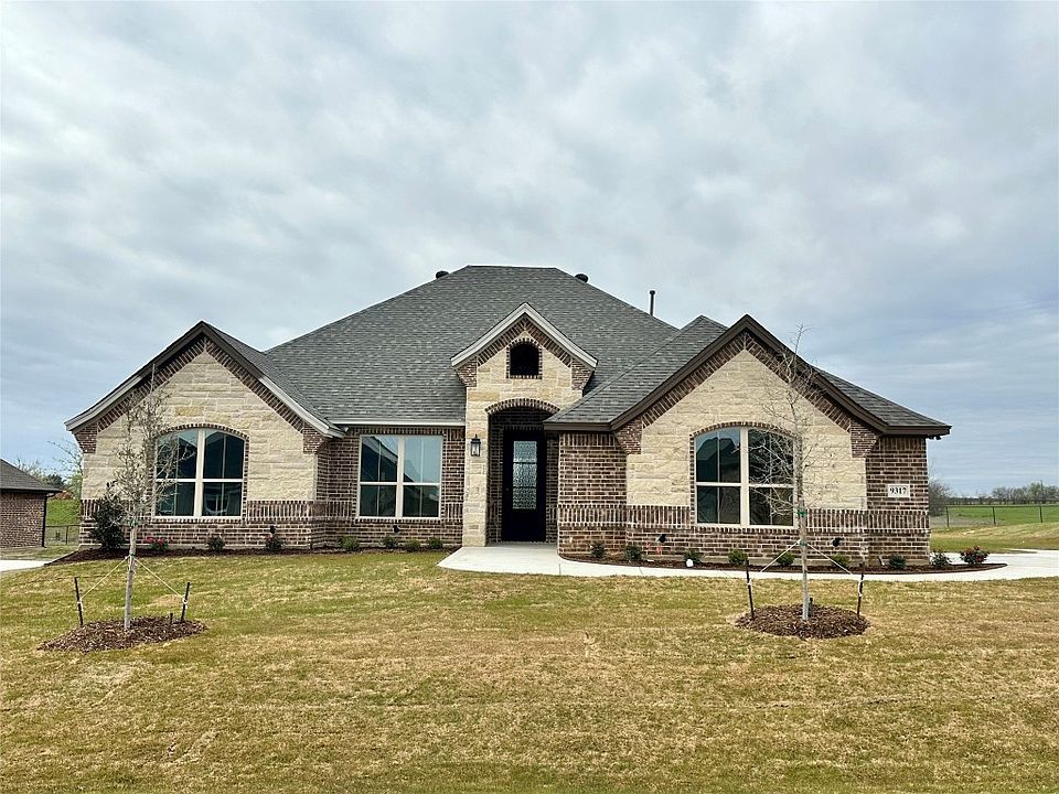 New Construction Home by on nearly half-acre in gated community of Wildcat Ridge in highly sought after Godley ISD! This gorgeous home features a stunning wrought iron front door, floor to ceiling gas stone fireplace, coffered ceiling treatment in living area, beautiful large, granite island kitchen counter tops, stainless appliances, upgraded 5 burner gas cooktop, fabulous kitchen backsplash, custom cabinetry throughout, upgraded ceramic wood look tiled flooring, exquisite lighting fixtures, & spectacular crown molding. Spacious office for the work at home professional. Oversized primary suite with separate granite vanities, garden tub, shower, walk in closet! Split bedroom arrangements with walk in closets. Oversized covered back patio to enjoy Texas sunsets, overlooking the pasture & pond behind you! With extensive crown molding, FOAM insulation & fabulous open floor plan, this home leaves nothing out!