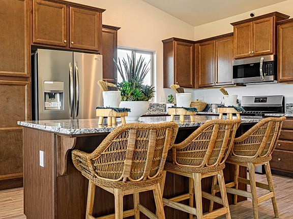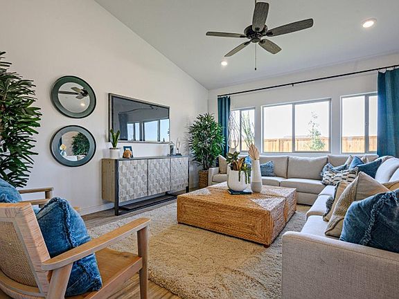 Lennar New Construction - Foxtail - California Series at Gossamer Grove in Shafter, CA. This 1725 sq ft single-story home has a convenient layout that includes everything a growing family needs, with two bedrooms at the front of the home and two in the back, including the owner's suite. In the center is a comfortable living area that includes a Great Room, kitchen and dining room with backyard access. California Series is a collection of new homes for sale at the Gossamer Grove masterplan community in Shafter, CA. Offering a laidback and family-friendly atmosphere with engaging onsite amenities, the community is surrounded by restaurants, shopping centers and is less than four miles from Studio Movie Grill, River Lakes Golf Course and Meadows Field Airport. Homeowners can enjoy a variety of onsite amenities and students of the community attend the top-rated Norris School District.
