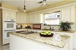 Nestled on a beautifully treed street in the classic neighborhood of Champion Forest is this charming home w/two bedrooms (or study)& two full bathrooms down. Unique entry is a wall of lead glass windows that lead to a striking two story den w/a wet bar, gas fpl, custom shelves & a wall of windows overlooking the bkyd. The gourmet kitchen features granite counters, dbl oven, lrg island w/glass stove top & a great view of the backyard. Beautiful granite vanities in all baths are a recent update.