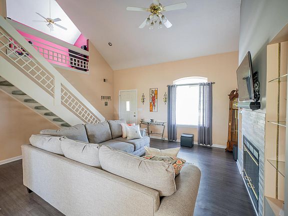 WELCOME TO 9318 JUSTINE CT IN J-TOWN - MISS CLEAN LIVES HERE! Lovely 2 story home w/great curb appeal...you should see the inside...Trendy paint colors w/a bright & airy feel. Cozy living room w/vaulted ceiling & fireplace for those cool evenings that are soon to come! The living room leads to the dining area w/trey ceiling & sliding glass door to deck & lets in lots of natural light. The kitchen offers white cabinetry & plenty of counter space. Laundry room off of kitchen for convenience. 1 Bedroom & a full bath complete the 1st floor. Upstairs you will find an awesome loft area that is currently used as an office but, could be whatever you want it to be. The master