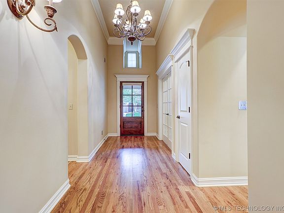 Impeccably well kept and beautiful ONE STORY 3 bedroom plus office in Ashton Hollow Villas gated community. Rare opportunity to purchase in this neighborhood! Jenks schools. Split bedroom plan with 2 bedrooms up front & master in back. Open floor plan with large vaulted beamed ceiling family room, eat-in breakfast nook area and formal dining. Kitchen has lots of counter & cabinet space w/ walk-in pantry. Full staircase inside to attic space with additional expansion room ready to finish out to add more square footage. 3 Car garage w/storm shelter. Roof & exterior paint 3 mo old. Beautifully professional landscaped. HOA Fee includes mowing & lawn treatments for front yards (minimal charge for backyard mow).