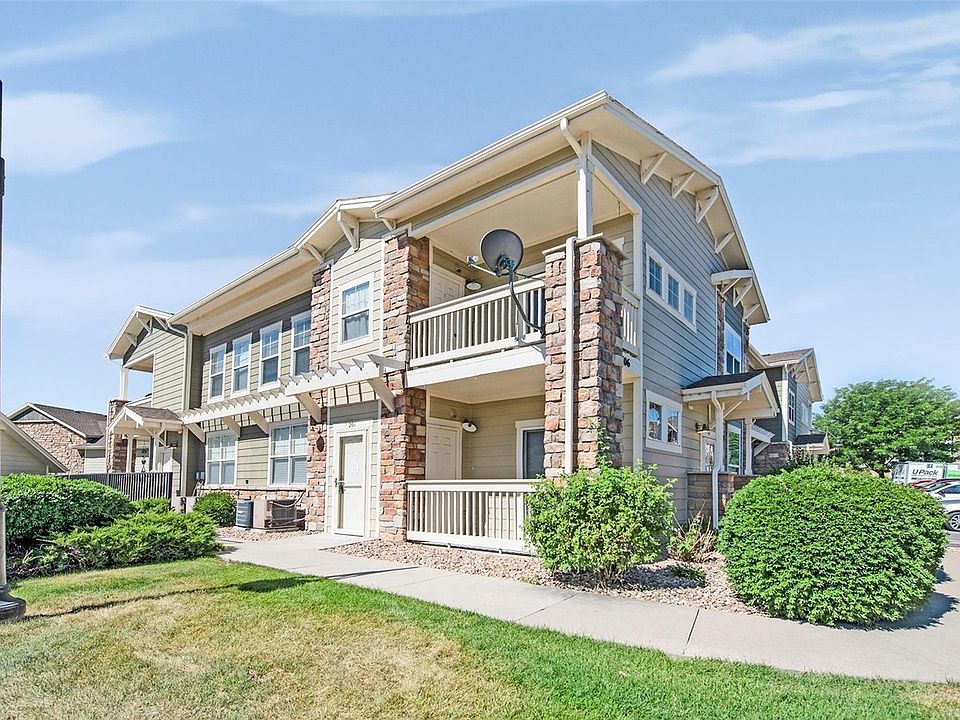 Bright and open upper level corner condo w/ 2 bedrooms & 2 full baths*Vaulted ceilings, gas fireplace & central A/C*Newly updated tile flooring in kitchen and both bathrooms, and beautiful refinished white kitchen cabinets* *Lighting updated throughout condo, with LED can lights and new chandeliers in kitchen and breakfast nook* Refrigerator, Washer, & Dryer included!*Bedrooms are generously sized, and master includes en suite bath with soaking tub, duel vanity, and large walk-in closet*Plenty of storage with closet off of balcony and Detached 1 car garage with opener included*Community pool w/ spa, & neighborhood playground*Includes access to the amenities of desirable Stonegate Village community including Lincoln Park nearby with larger pool, kiddie wading area, tennis courts, and manicured park ready for throwing a ball or tossing a Frisbee*King Soopers, Parker Rec Center, E-470, and Cherry Creek Trail all less than 2 miles away. Seller willing to provide quick closing