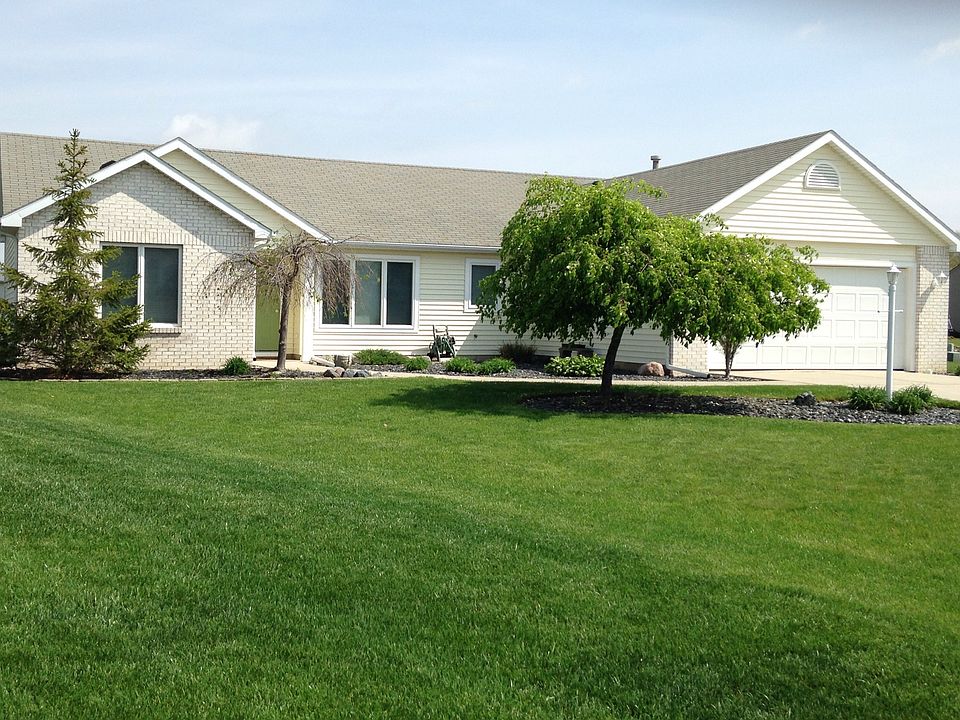 Cozy 3 br split plan, 2 bath ranch on cul-de-sac lot in Mill Ridge Addition. Built by Delagrange Homes in 1999 this 1463 square foot home offers an open concept with cathedral ceiling in great room and plenty of natural lighting provided by quality-made Andersen windows. It also features beautiful natural hickory cabinets in kitchen and bathrooms, updated High Definition countertop and tile backsplash in kitchen, wood floor in entry way, brick fireplace with gas log insert in great room, updated plush carpet in living room and bedrooms, double sinks in master bathroom. Plenty of storage throughout including kitchen pantry, walk-in closet in master br, cabinets in laundry room, and a pull-down attic with partial flooring. Laundry room has sink. 6-panel doors. 2-car attached finished garage. Huge deck with pergola and partial vinyl fence that wraps around for added privacy, plus a stamped patio were added in 2008. All of this overlooks a nicely landscaped setting with a 6' privacy fence that lines the rear of the property. A sidewalk leads from the deck to a cute and very functional 12x10 storage shed. This "original owner" home is a must see! *Please note, hot tub on deck is not included.