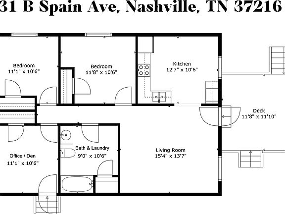 Updated, private unit on one of East Nashville's most popular streets! 931 B Spain Ave is the rear unit of a historic duplex that has PLENTY of off street parking right next to your new front door. This 835 sqft home boasts 2 bedrooms and an office/den, one full bath with laundry hook-ups, large living room, and eat-in kitchen - all with fresh paint and wood-look floors. The large and private covered deck welcomes you home at the end of a long day and is perfect for evening meals or morning coffee al fresco! Office/Den has the second exterior door and closet so could be used as 3rd bedroom. One small pet under 30lbs allowed with $300 nonrefundable pet fee. Backyard parking is shared by both units. *Agent requires Showing Request Form be completed before showing will be scheduled.* Tenant pays electric, water, and internet. Trash and recycling included. Required income of at least 3x the monthly rental amount and min 650 credit score. This property is non-smoking, which includes all tobacco, e-cigarettes, and vaping. Background, criminal, employment verification, and past tenancy checks required for all occupants over 18 years old. Renters insurance highly suggested.