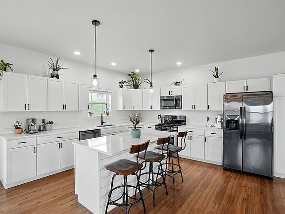 Step into this move-in ready split-level home. This newer construction single-family home features 3 spacious bedrooms and 3 full bathrooms, making it ideal for modern living. The main level boasts an open-concept layout filled with natural light, enhanced by 9-foot ceilings and luxury vinyl plank flooring that seamlessly connects the kitchen, dining, and living areas. The kitchen is a showstopper with stunning white-painted cabinets, sleek quartz countertops, black-finished hardware and lighting, and a large center island perfect for entertaining. Large living room with a sleek electric fireplace. Step out onto the spacious deck off the dining area, where you’ll enjoy the updated landscaping and trees. The primary suite includes double closets and a private bathroom with a tiled walk-in shower. Downstairs, you'll find a lower-level family room with a tasteful wood ceiling, 3rd bedroom and bathroom and a generously sized laundry/mud room just off the attached 2 car garage. This home combines style, comfort, and functionality at a great price point. Don’t miss your chance to own this beautifully maintained home with a modern design and all the upgrades you’ve been looking for!