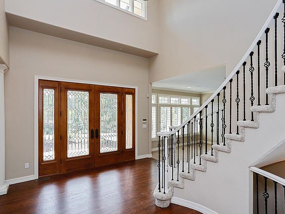 Majestic home in Castle Pines Village! The open concept kitchen has stainless steel high end appliances, slab granite counter tops, breakfast bar and opens into the kitchen nook with double sided fireplace into the family room. Also on this level is the office and half bathroom. All rooms on this floor open to the back patios. On the upper level is the romantic master suite with private balcony, another double sided fireplace shared with the master bath area and large walk in closet. Two additional bedrooms with Jack-n-Jill bathroom, a guest bedroom with separate bath, are also on this level plus a back staircase to the kitchen. On the lower level is an additional family room, bar area, media room, plus two additional bedrooms, full bath, and a large storage area. Oversized four car attached garage. Located down the path, across the street is a secluded children's playground.