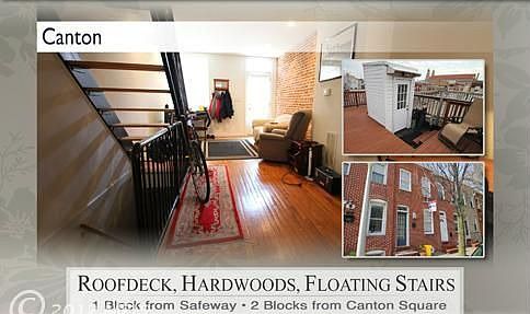 ($1500 is monthly rental amount) Gorgeous 2 bed, 1.5 bath rental right in the heart of Canton! One block from Safeway, 2 blocks from Canton square, location could not be more ideal! Property features hardwoods, floating stairs, amazing roofdeck, rear patio for entertaining, exposed brick and much more! This won't be on the market long, so hurry!