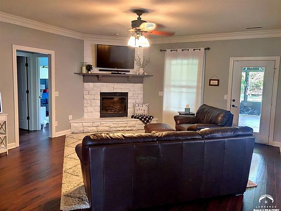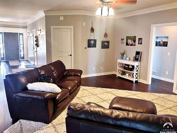 Many upgrades in this single level home on the edge of Baldwin City. Large open kitchen with stainless steel appliances and quartz countertops. Vaulted ceiling in master. Double sink, quartz countertops, jetted tub, separate shower in Master Bathroom. All seasons room with separate heating/cooling, built-in seating, and bar. One of the few homes with a 3 car garage in Baldwin City. You are going to love this home!!