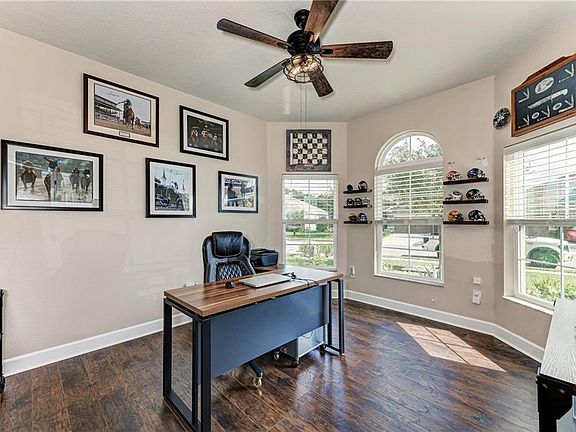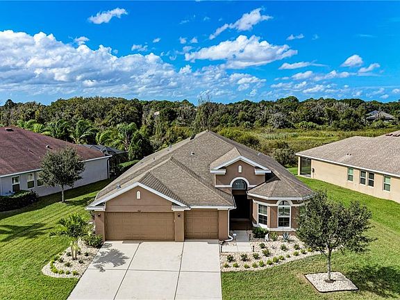 What a perfect opportunity to own a beautiful, energy-efficient home in sought-after GreyHawk West! This spacious 2466sf "Arlington" plan offers 4 bedrooms, 3 bathrooms, a den and a 3-car garage, and is poised on a 0.23-acre private preserve lot. Updated, low-maintenance landscaping will welcome you home as you arrive through the double-door entry into an open, versatile layout. Diagonal tile in the main living areas, Greenguard® laminate in the bedrooms and low-VOC paint on the walls will help you breathe easy. Entertain from the central chef's kitchen with a new Samsung black stainless 4-door fridge, gas double-oven range, granite counters and breakfast bar, or relax and grill on the covered lanai with the lush preserve backdrop. The back yard has plenty of room for a private pool and can be fenced if desired. A large owners' retreat will spoil you with granite counters, dual sinks, separate commode, large shower, garden tub and an awe-inspiring walk-in closet. Some of the other bonuses to this home include hurricane panels, gutters/downspouts, Ring(tm) doorbell and security cameras, in-wall pest system, reclaimed irrigation water, and Low E double insulated windows. Be sure to view the Full Features List and the 360-degree interactive virtual tour! Greyhawk West is an amenity-rich, gated community with two resort-style pools, fitness center, lighted tennis and basketball courts, bass-stocked lakes, fishing pier, miles of nature trails and fun for all ages.
