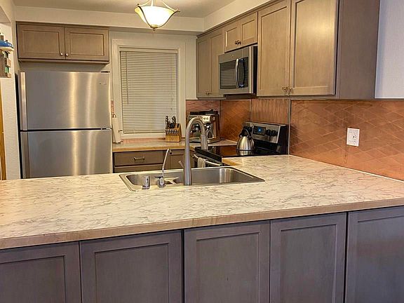 Newly remodeled throughout, this darling 2 bedroom 1 bathroom mid-level unit with over 900 sqft. of living space. New flooring throughout whole unit. Brand new kitchen including, cabinets, appliances, counter tops. Bathroom upgraded with new bathtub, flooring, vanity, mirror. Cozy fireplace adds a nice touch of ambiance, walk in laundry room, and private deck. With no-stair access, you have quick entry from your car to your front door. The single covered parking space is a bonus along with a storage shed for your extra belongings. The complex offers a large shared grassy yard. Affordable HOA's, low maintenance living, and convenient parking makes this unit unique and desirable. Call the office today for a showing.