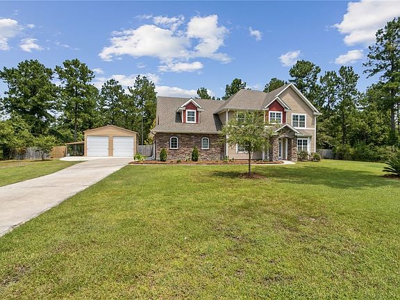 Beautiful custom WH Gross construction home in desirable sought after community! 5 spacious bedrooms and 3.5 bathrooms! Step inside to the 2 story foyer with natural light cascading down. Formal Dining Room, living room, office with French doors, powder room and kitchen on the main level. Peaceful views of the screened porch/enclosure encompassing the gunite 20 x 40 inground pool! 8 foot tanning deck with table too! Fenced yard is great for kids and pets to explore! 3 car garage with charging station for your Tesla. Workshop added with electric and auto-lift included! Ample space for lots of vehicles, boats or RVs. Upstairs boasts oversized owners retreat with custom closet, double vanity and stand alone tiled shower. "Cat-walk" leads to another bedroom with ensuite! 2 additional bedrooms share a Jack-n-Jill bathroom! Bonus Room/5th bedroom is HUGE! (13.6 x 23.6) Things to enjoy: barn door, custom built-ins, freshly painted interior, new carpet in the upstairs, wood-tile downstairs and wet areas, convenient laundry to bedrooms, no HOA, no city taxes, surrounded by other custom homes! Convenient to Florida (2 minutes to Highway 17), 20 minutes to Kings Bay, 25 minutes to Target, 10 minutes to Chick-fil-A, 20 minutes to airport. So many reasons to love this home!