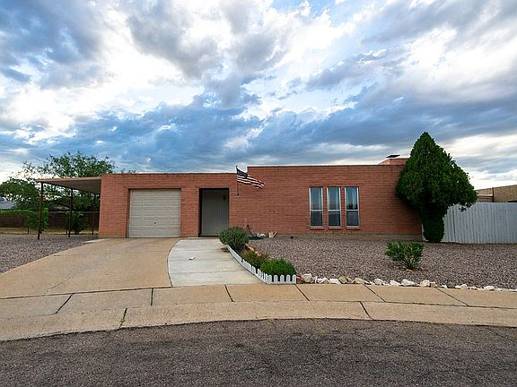 This beautiful 3 bedroom, 2 bathroom home is located on a quiet cul de sac on nearly a .25 acre within the Pueblo Del Sol community. Home includes an attached garage with a work shed, a carport, and a storage shed in the back yard. Also on the property are several fruit trees (apple, peach, and pomegranate), grape vines, a blackberry bush, pine trees, and various colorful flowering shrubs. Home uses evaporative cooling, a natural gas furnace and/or a fireplace for heat. Yard is fully fenced, with a recently constructed privacy fence/gate on one side.