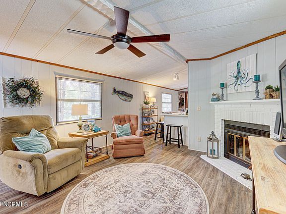 Opportunity to own a great home close to beautiful Brunswick County beaches. This is a 2 bedroom, 2 full bathroom home that has been well cared for and is being sold fully furnished! Great sized lot, each of the bedrooms have their own bathroom and are on opposite sides of the home for privacy. The living area features a brick fireplace and cathedral ceiling. LVP flooring runs throughout the whole house. The kitchen boasts white cabinetry, with plenty of storage space. One bathroom has a step in shower and the other has a shower/tub combo. Come and see this awesome property, you will not be disappointed!