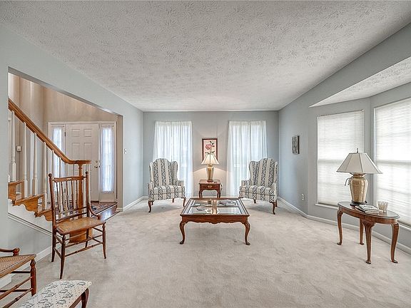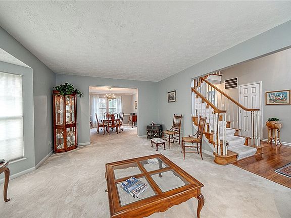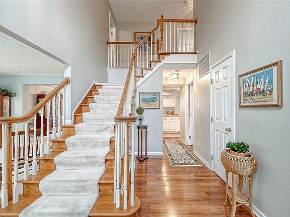 The epitome of elegance and comfort awaits you at this stately home in desirable Pointe West. An inviting 2-sty foyer w/grand staircase welcomes bathes in natural light. Dedicated den w/double-doors for the work from home employee. Remodeled kitchen is freshly painted (as is the FR) boasting white cabinetry, quartz counters, SS appliances & beautiful laminate floors. A step-down FR w/wood-burning fireplace is spacious, light, bright. Convenient 1st fl laundry off kitchen. Formal LR leads to formal DR - spacious and lovely. Upstairs, the primary bedroom is a relaxing retreat offering a remodeled, spa-like bath: twin, marble countered vanities, glass enclosed shower, jet tub, separate water closet, huge walk-in closet. Three other spacious bedrooms each with ample closets/windows. and large. Enormous basement is ready for your personal finishes - plumbed for bathroom. Play, relax and enjoy making memories outdoors in the private, treelined yard complete with sizable deck.