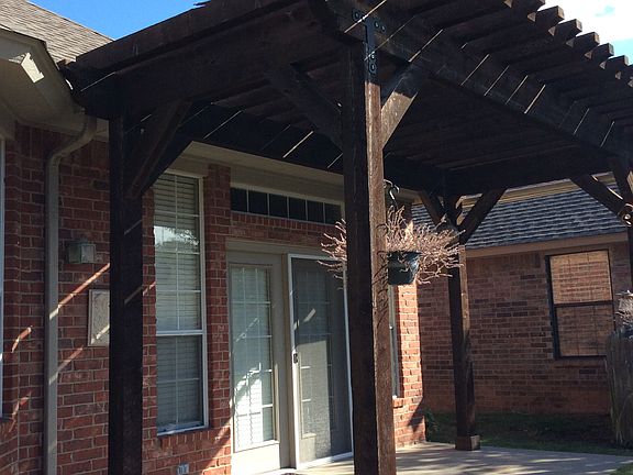 Lovely tiled entry opening into open formal dining, living room. High ceilings. Pergola over southern exposed patio. Double sinks in master bath. New dishwasher. New roof in 2013 Garage has walk in storm shelter Absolutely no steps in this charming home.