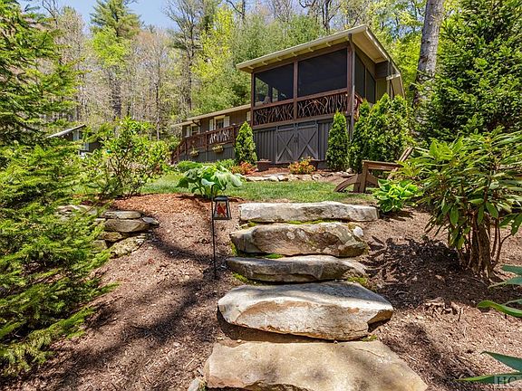 Is this Heaven? No, this is Highlands at it's best! A must see move in ready, petite 2BR/2BA cottage. Well maintained, even the Inspector wanted to buy it. Private, serene, outdoor living close to Mirror Lake and Town. Splendid interiors, beginning with screened porch entry. Galley Kitchen with designer appliances, banquette, and plenty of light. Living area, quaint & funqshwe', leading to the bedrooms, both with private BA's. . Sleeping loft or play area above outdoor shed is a hit!