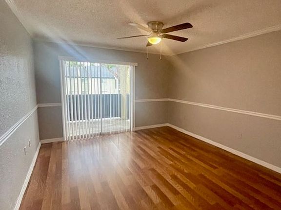 2 Bedroom / 1 Bath Condominium located in Destiny Springs. Second floor unit. Unit has an open area for designated living room and dining room. Screened patio area. Laminated wood flooring thru the unit. Unit has been freshly painted. Good size rooms with spacious closets. Rent includes - water & sewer. Community offers - laundry rooms on site, Tennis Court and community pool.