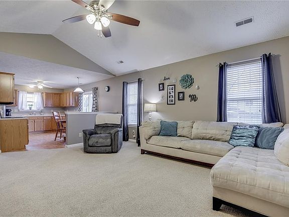 Lovely 3 bed / 2 bath ranch home featuring a split bedroom floor plan allowing plenty of privacy for the master suite with full master bath and walk-in closet. The eat-in kitchen is open to the Great Room with cathedral ceiling to add to the open feel of the home. The kitchen also boasts a pantry, pretty crown molding topping the cabinets, and new stainless steel fridge, microwave-hood, & oven range! Step out the sliding glass doors to the full privacy fenced backyard with concrete patio -- great for entertaining! With mature landscaping, professionally cleaned carpets, and fresh interior paint in soft, gray tones throughout this adorable home is ready for you to move right in! Center Grove schools. Close to shopping and entertainment, too!