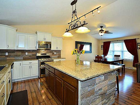 10 minutes to Cranberry~2 Masters~1.89 acres! Vaulted ceilings, open floor plan, Premium granite kitchen, island, 2 master baths. Huge deck accessible from either the master or LR french doors, Flagstone-look concrete patio 5 garages! Living room has drystack stone and barn mantle surrounding pellet stove. Picket fence around pool, playset, with tall fencing for dogs around the perimeter of HUGE flat rear yard. Roof, siding, kitchen, addition components apprx 2 years old. Great room sizes and 4 baths