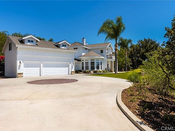 Welcome to this beautiful hilltop equestrian property located at the end of a private drive, in the highly popular area of Orange Park Acres. This unique home is situated on over an acre of land and has plenty of room for ADUs or Mother-In-Law additions. The home was recently renovated with new windows, new hardwood flooring, kitchen upgrades, new bathrooms and too many things to mention. The entryway to the home features a striking wall molding that reaches all the way up to the second story, to your left is a wonderful custom hardwood staircase. To your right is a living room or office space where you can entertain guests in front of the fireplace, or get some work done while looking at a beautiful view of the hills. As you go further into the home the charming living room has easy access to and view of the wonderful backyard perfect for indoor/outdoor entertaining. The circular dining room includes a built-in china cabinet and has a stunning view of the hills and beautiful sunsets. This room is perfect to elegantly entertain family and friends. The kitchen with quartz countertops, also boasts bright white kitchen cabinets, a Viking 6 burner stove, and a new Caf double oven. The extensive counter space and the solid Butcher Block island provide the room you need to prepare and serve for the family or large parties. For a more casual meal, there is a dining nook off the kitchen that is surrounded by the delightful view of the backyard. This house features two primary bedrooms, one upstairs and one downstairs. Both are bright with large walk-in closets. The downstairs primary has its own private entrance direct from the backyard. The upstairs primary has a cozy fireplace, access to a marvelous balcony and his and hers vanity. Two more bedrooms are located upstairs and share a Jack and Jill bathroom which has a new quartz countertop. On top of the 3-car garage there is a fabulous non-permitted approximately 600+sqft. studio apartment that has a bathroom and a large balcony. The Horse Facilities include a 4 stall barn with runs and a large tack room as well as a round pen arena. This estate creates an amazing setting for relaxed living in quiet surroundings in connection with nature, and with easy access to everyday life. Don't miss out on this fabulous opportunity!