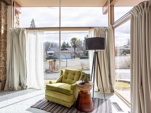 Mid-Century Modern spacious home with a distinctive architectural design, priced at $184 per sq. ft. Features are crisp & sharp lines, floor to ceiling windows, and makes this one level truly unique. Home is situated on a .33 corner lot, with in-ground gunite swimming pool, and is located close to Asante Medical Center. Kitchen has new quartz counter tops, stainless steel