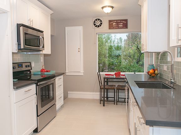 Remodeled Craftsman with all of the charm - beautiful stained oak floors on main w/vaulted ceilings in living room, wood trimmed double pane windows, 2 large bedrooms and full bath. Completely redone kitchen w/ceramic tile floors, stainless appliance and slab countertops. Daylight basement w/separate entrance - polished concrete floors, family room, large laundry room, ample closets and large egress legal 3rd bedroom. Large fenced flat back yard and landscaped front yard. Off street parking for 4 cars.