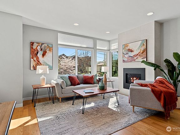 Soak up the springtime sun inside & out at this modern Greenwood townhome! Set ideally close to Greenwood, Green Lake & the best of N Seattle, move right in & enjoy this central location. Walls of windows let light pour in, showcasing a great room concept main floor complete w/ hardwood floors, a gas fireplace & a chef's kitchen w/ gas cooking, SS appliances, quartz counters & island w/ bfast bar. 2 beds & a full bath are on the garden level while the primary suite enjoys perfect privacy on the top floor outfitted w/ a private deck, vaulted ceilings, custom walk-in closet & 3/4 bath. Outside, find dedicated off-street prkg & gardens lush w/ berries, kale & herbs. Green Lake, Greenwood, Interurban Trail & quick access to downtown nearby!