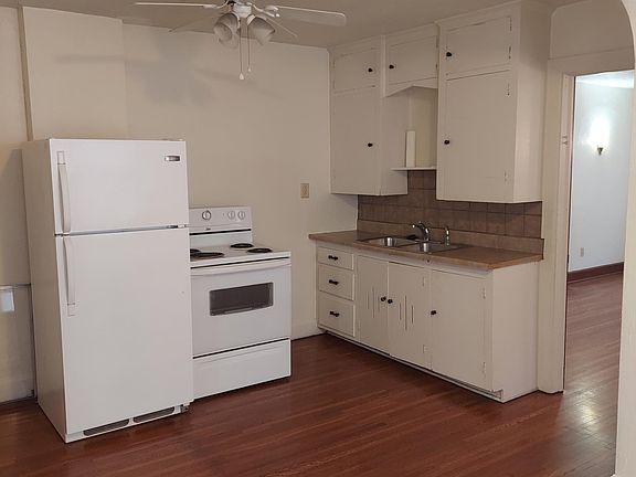 Check-out this lovely duplex, located in the Riverside area with loads of charm! Original hardwood floors, original decorative doors/doorknobs, and curved archways throughout. Large living room has beautiful art deco electric sconces around the room that can be turned on and off separately and big storage closet. Kitchen has eat-in breakfast nook and extra storage space. Entry to basement and washer and dryer is off the kitchen. Hallway has large built-in cabinets and drawers. Bathroom has original tile floors, large cast iron tub, and white tile walls. Nice-sized bedroom with a large closet. This will not last long. Contact us today. Trash service is paid. Resident pays for gas, electric, and water. Large pets are allowed with $250 Pet Deposit and $25 monthly Pet Rent. Limit 2 pets. Nice off-street parking with driveway.