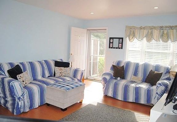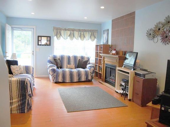 12 year young, 2BR, 1.5BA townhouse with three finished living levels. This well maintained townhouse offers a1st level spacious fireplace living room with bay window, laminate wood floors, eat in kitchen with oak cabinets, ceramic tile floor and French doors to deck and half bath. Upper level has a good size Master Bedroom with laminate wood floors, walk in closet. Second bedroom also has laminate wood floors. Full bath with double sink vanity, Jacuzzi tub with marble tile and marble floor. Finished lower level has a bonus room/guest room, family room area and laundry. Two parking spaces in convenient location on the Avon line close to major routes. Lots of storage,great closet space, central air, gas heat and hot water. 24 hour notice required for all showings.