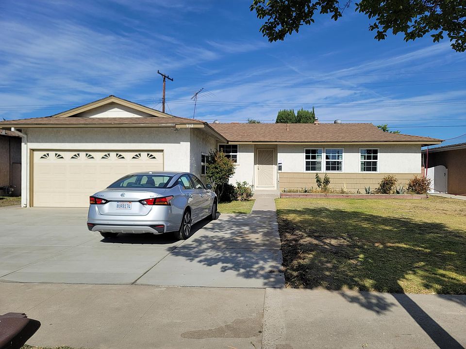 Great home on a quiet street and is in move-in condition. Feature 4 bedrooms and 2 bath with new vinyl flooring throughout. Kitchen was upgraded white cabinets with plenty of storage, granite counter top and included Heater and Air Condition, Refrigerator and washer/dryer are included. The spacious backyard is very private and includes a concrete patio, extended patio cover. This home is in a very central location minutes to freeway, shopping, theme parks and more. Landlord keep garage for own used and this home for rent is without Garage but it's plenty spaces for car parking on driveway. Owner pay gardener bi-weekly.