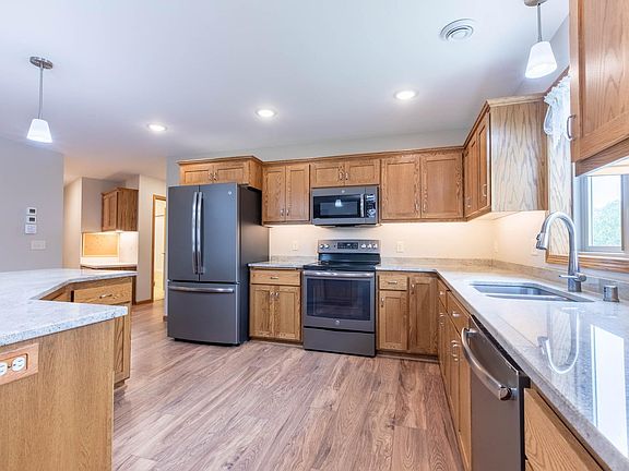 Discover the ideal home for those seeking comfort, convenience, and the opportunity for a home office/business. This spacious patio home features a versatile flex room/office with both an interior and private exterior entrance that is perfect for meeting clients or creating a dedicated workspace without disrupting daily living. The heated 3-stall garage is thoughtfully divided into two bays, offering a workshop or business use on one side while still maintaining private parking on the other. Inside, enjoy an open-concept layout with a beautiful modern kitchen complete with granite countertops and stainless-steel appliances, a large living room with a cozy fireplace, and multiple heat sources including in-floor heat for year-round comfort. With all living facilities on one level, and a peaceful corner-lot setting, this home blends practical function with everyday ease. A rare opportunity for those seeking a home with business flexibility—don’t miss it!