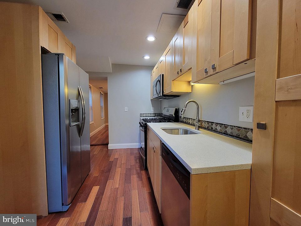 Beautifully renovated, bright, 3 story, 3 full-sized bedroom, each with abundant closet space, 3 full bathrooms, each with attractive vanities. First floor has a decent sized living room, a family room, and a separate dining room with a separate laundry room next to the kitchen. Renovated in 1992 with all new wiring, plumbing etc. with more recently renovated kitchen and bathrooms. Real hardwood floors in the first floor living area. Energy saving gas heat with central air conditioning keeps you comfortable year-round. Full size washer and dryer next to the kitchen. Located just around the corner from Ravens Stadium, 3 blocks from Baltimores fabulous Inner Harbor Waterfront, and 2 blocks from the recently renovated Historic Cross Street Market makes this a fun location. 98 Walk Score means this is a fun, accessible and popular neighborhood. 88 Bike Scores is appreciated by the health conscious.