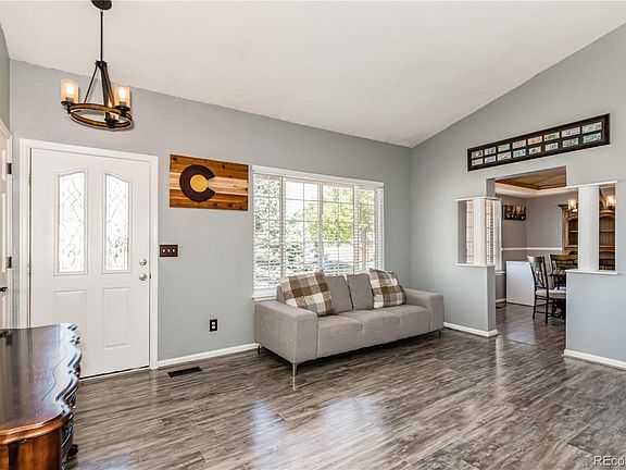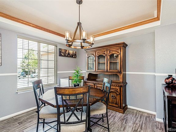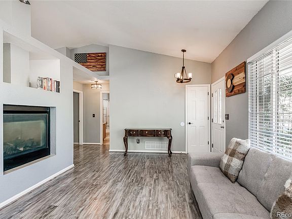 Welcome home to this great Ranch style home in the Rattlesnake Ridge subdivision in Aurora! As you walk in you are greeted by newer floors throughout, a formal dining room space and a family room with newly serviced double-sided fireplace, vaulted ceilings and an open concept that connects you to the kitchen and great room area. White cabinets with lots of storage and a central cooktop area with bar seating finish the space. Walk from the great room to the concrete patio with fresh landscaping - newly added mulch and sod. Back inside, walk steps to the spacious Master Bedroom with en suite full bathroom including separate tub and shower. Convenient main floor laundry with garage access. Two additional bedrooms and full bath complete the main level. The basement has a flex space currently used as a gym, 3/4 bathroom and large bedroom with closet, as well as a second non-conforming bedroom. This gem also has newer floors, updated paint, a new furnace, new air conditioner, new water heater and newer roof. Great proximity to Buckley AFB, Town Center at Aurora, I-225, restaurants and more! Don't miss out, this home won't last long!