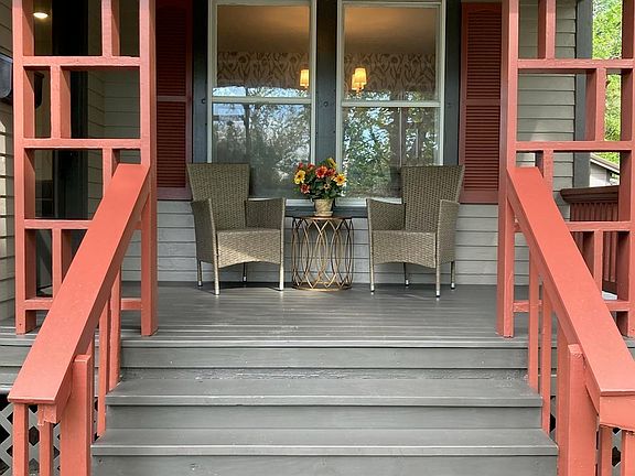 Brick sidewalk leads up to this charming Craftsman Bungalow which has been lovingly restored and updated. Galley kitchen is framed by arched doorways and boasts new tall, soft-close cabinets, stainless-steel appliances, travertine counter tops and a gourmet sink with accessories. Glass-front cabinets allow you to display your prized dishes. Original kitchen footprint has been expanded to allow for additional pantry storage area. Main floor bathroom has been updated with double sink vanity, arched mirrors and custom glass shower door. Stacked stone fireplace with electric insert provides both heat and ambiance to the living room. Main floor bedroom, which has a plank wall, could be used as an home office with this as your Zoom backdrop. The character of the house has been maintained but improved with refinished hardwood floors, oak woodwork and doors. Sit on the covered front porch, chat with the friendly neighbors and enjoy the newly landscaped front yard. Or watch the kids or pets play in the fenced-in back yard. Lots of NEW - paint inside and out, lighting, gutters/downspouts, garage roof, back doors and pedestrian garage door. Don't miss out on this gem!