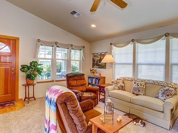 Prime Home Location in Delightful & Charming 55+ community with RV parking and park like area with gazebo for those family gatherings. Single level home open floor plan with split bedrooms built in 2000 with Wonderful Mountain Views! Large living room with picture windows, vaulted ceilings, French doors to study or 3rd bedroom. Light & bright kitchen with beautiful cabinets and breakfast bar. Spacious master bedroom with walk-in closet. Laundry room with storage. Plant shelves, new carpet, solid wood doors throughout. Oversized garage with built-in cabinets. Front AND Back covered patios with skylights surrounded by beautiful landscape, crepe myrtle, dogwood, roses and complete with doggie run and sunny raised bed garden area on a spacious 0.19 acre lot!