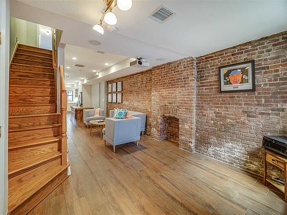This rare 2 family home with a turnkey owner's duplex and exceptional rental income potential is a must see. The first floor boasts a beautiful, modern open kitchen, bathroom and living room that opens up to a large back yard and pergola. Up the stairs you find a master bedroom with ample closet space, a full newly renovated bathroom and a second bedroom and a washer/dryer. The two top floors are a 3 bedroom apartment with a separate front door at the top of the stoop. At the top of the stairs on the 3rd floor is a large kitchen, bathroom, living area and bedroom on the front. The fourth floor has bedrooms on either side, a full bath, and open office space. The unit is flooded with natural light from two skylights. This home is centrally located on a bus route and walking distance to all that Hoboken has to offer.