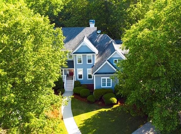 Relax on this 1200 sq ft wraparound porch and enjoy the seasonal views of the lake! Unwind at the end of the day at this fabulous Southern Living style home within walking distance of Two Mile Creek Park where you will find boat ramp, picnic areas and walking trails. From the front porch you will enjoy seasonal lake views and beautiful sunsets from the wrap-a-round porch. This gorgeous custom home has been meticulously cared for. Two sets of french doors allows the dining room to open up to the front porch. Enjoy the main floor master with the private sitting room and porch access. Separate boat driveway and storage; lush landscaping in the front and the fenced backyard. So many features to mention that you just need to come see! New High School is scheduled to open in the fall.
