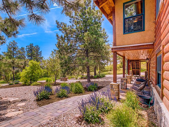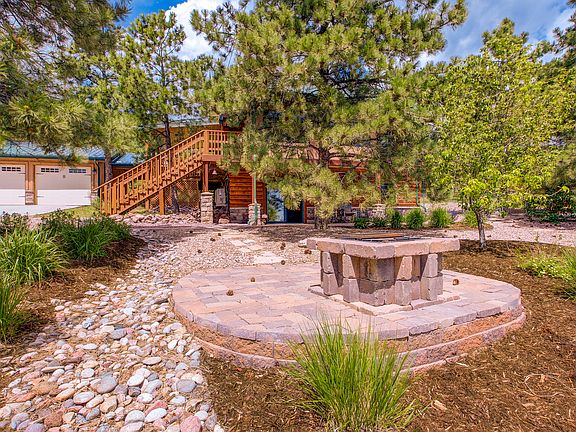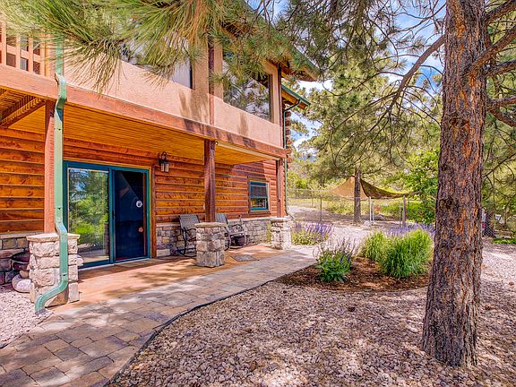 This stunning property includes a 5-bedroom, 2-bath custom log home on 11.3 wooded, scenic acres tucked against the mountains just minutes south of downtown Colorado Springs. This tranquil ranchette boasts outstanding mountain views, a guest home, abundant outdoor entertaining space, multiple RV hookups, multiple water sources, and a versatile shop (with professional-grade car lift) that can be converted to its original use as a stable.The beautiful log home is just over 2,500 square feet, with the following square footages on record with the assessor: main floor, 926; downstairs, 926; loft, 650. A covered deck can be enclosed to create additional interior living space. The home has multiple heat sources: propane/baseboard; a wood stove; and electric heat/AC units. A walk-out basement leads to a beautifully landscaped yard. Covered outdoor entertaining space has lights and power, and is ready for an outdoor kitchen. The oversized 2-car garage has 220, heat and water.The property's guest house has its own kitchen and full bathroom. A 25x100 square foot shop/barn/multiple-car garage has power, heat, an office and a car lift that's included in a sale. Additional property features include a remote-controlled front gate, multiple RV hookups, 2 dog runs and a circular driveway.A water district provides a reliable water source, and the property's 1,700-gallon cistern offers additional water security; the property also has a well. Property is fenced on three sides: front, north and south.With this property's location along the scenic 115 corridor, the commute to Fort Carson or downtown Colorado Springs couldn't be easier.