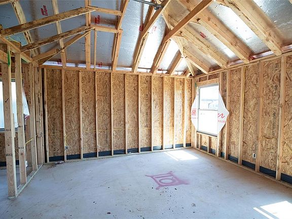 The Hazel floorplan has a total of 2,095 Sqft for living space, including 1,900 Sqft of indoor living and 220 Sqft of outdoor living that features a wood-burning fireplace, a gas line, and a TV hookup! This immaculate home offers 4 bedrooms, 2 full bathrooms, covered patios, a utility room, and a 3-car garage with an in-ground storm shelter installed. The great room presents a beautiful coffered ceiling with a ceiling fan, a gorgeous corner gas fireplace with our stacked stone detail, large 7’ windows, rocker switches throughout, and elegant wood-look tile. The high-end kitchen has stainless-steel appliances, including a 5-burner cooktop, decorative tile backsplash, custom-built cabinets to the ceiling with under cabinet lighting and cabinet hardware installed throughout, a large corner pantry, 3 CM countertops, more wood look tile, stunning pendant lighting, and an oversized center island that holds our new work station sink, a dishwasher, and a trash can pullout. The primary suite spotlights a sloped ceiling detail with a ceiling fan, windows, and our cozy carpet finish. The spa-like prime bath has a free-standing tub, a dual sink vanity with framed mirrors, 3 CM countertops, a European walk-in shower, a private water closet, and a huge walk-in closet with horizontal and vertical storage opportunities. Secondary bedrooms feature high ceilings with ceiling fans, sizeable closets, windows, and carpeted flooring. Other amenities for this energy efficient home include a tankless water heater, a fresh air ventilation system, R-44 and R-15 insulation, and so much MORE!