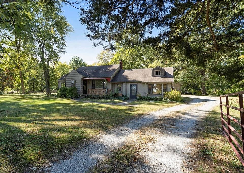 This charming home boasts great bones and fantastic curb appeal, nestled on nearly 1.5 beautifully treed acres just 1 mile from I-470. With your personal touch, this property can become a true gem! Home features 4 bedrooms, 2 full baths, enclosed porch, 2 car detached garage and small barn. Second kitchen and 4th bedroom/2nd bath with a separate entrance, ideal for income potential or multi-generational living. Easily accessible attic offers ample storage. Shade trees abound with space for large vegetable gardens and extra income potential. Relax around the firepit and enjoy the view of berry patches and many perennial beds with peonies, irises, daylilies, and wildflowers. Some years morels live here, too. Entire property is fenced with a gated entry and no HOA. The owner is selling this well-loved home after 55 years, priced accordingly for a quick sale. Convenient location for easy commutes to work and access to neighboring communities. This property offers incredible potential! Come see it for yourself and envision the possibilities!