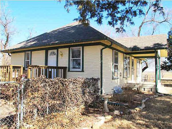 2 Bedroom, 1 bath home on 4.6AC +/- wooded lot and open field. Peaceful country living! Covered front porch. Large fenced backyard with carport and storage shed. Home has traditional character with archways and hardwood floors. Large windows allow for plenty of natural light. Nice oak kitchen with appliances. Basement finish includes a Rec/family room and 2 additional rooms. Central A/C. Propane heat w/ electric start. Horses allowed. The west 1.9 AC +/- is currently being farmed. Total finished SF approximately 1,195 SF +/-. Finished bsmt SF is measured and approximate. BFA is not listed in Harvey County record. *Verify schools.