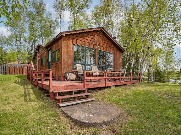 Welcome to this private retreat on Pequaywan Lake! Nestled on 2.75 acres with 675' of shoreline, this 2-bed, 1-bath cabin offers a peaceful escape located just over 30 miles from Duluth. Offering panoramic southern lake views from the deck or the cozy wood-burning fireplace! Enjoy the open concept footprint and the barn door entrances to both bedrooms that share an updated full bath. The 2-car detached garage located down the shoreline has a new metal roof and ample storage. It's accompanied by a bunk house featuring a family room, bedroom and 1/2 bath for guests. Prepare for boating season with a new dock and your very own private boat launch! Here's your opportunity to own a quiet and peaceful cabin on a private lake with plenty of outdoor recreation and exclusive lake access. Make sure to schedule your tour today!