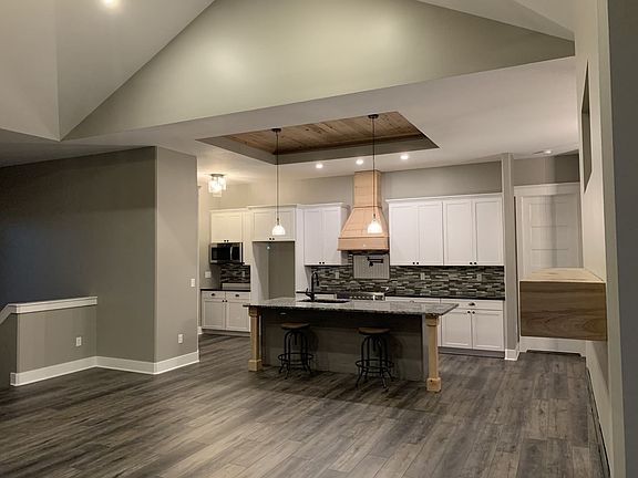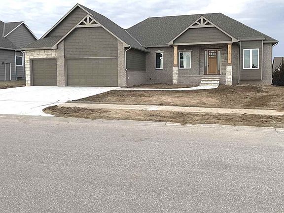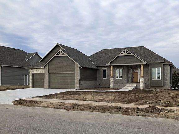 Great new home with a 4 car garage, 19 x 7 front porch, 18 x 12 covered deck, open floor plan, 95% gas furnace, 4 ton 13 Seer Air Conditioner, LOTS of UPGRADES for this price in Watercress, Maize South School District. Great location. Come see this 3 bedroom, split plan with great kitchen, 36" gas range that vents out, pot filler, custom built range hood, pantry, custom rustic beech tray ceiling and large island! Dining room has complimentary custom built beech ceiling tray. Electric fireplace in living room with beech mantle and vaulted ceiling. Fireplace has a thermostatically controlled blower, so it actually puts out heat! Garage is finished: insulated, sheet-rocked and painted. Plenty of room for 4 vehicles or a workshop. Large front porch and covered deck. Master has walk-in shower with rain head, private toilet room, large roman soaking tub for relaxing and 2 sinks! Seasonal hanging in closet and cabinet area. Main floor laundry room. Unfinished basement that can easily be finished. Designed to have 2 bedrooms & 2 bathrooms. Wet bar roughed-in, large office or workout room. There is a well, sprinkler system, landscaping and sod already in the price of the home. 18 x 12 deck is COMPOSITE! Front porch is 19 x 7. Great house for the price in luxurious Watercress. Come check it out today.