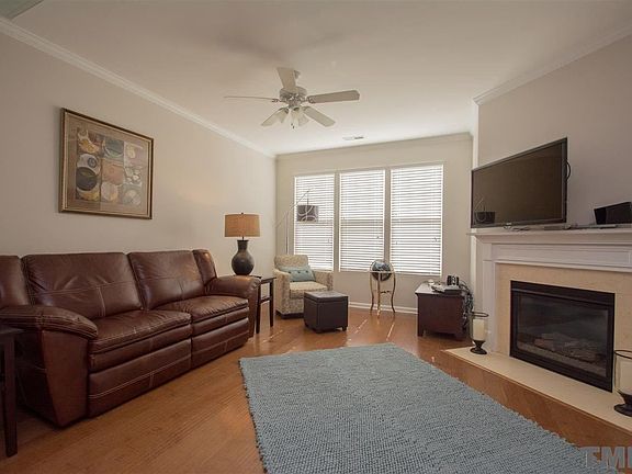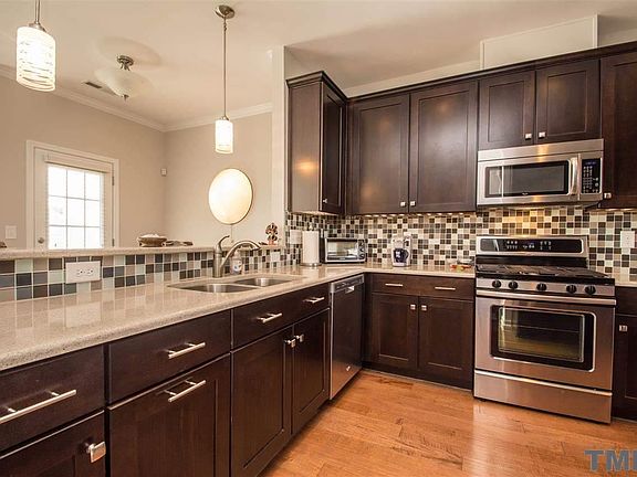 Gorgeous open floor plan home w/ 3 bedroom and office w/lovely hardwoods on 1st & 2nd levels. Plenty of upgraded cabinets, stainless steel appliances-including a gas stove, quartz counters, glass tile back splash & under cabinet lighting in kitchen. Living rm features a gas log fireplace & access to the covered deck. Master bedroom has trey ceiling, walk in closet & private bath w/dual vanity & tiled shower. Convenient to fabulous shopping, dining, I-540, RTP & RDU. Available for immediate move-in