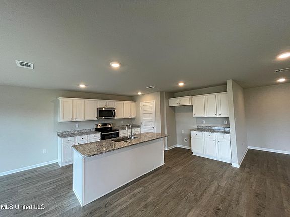 -- Quick Move in with Preferred Lender -- Large Flat Lot -- Generous spacing between homes -- Flood insurance is not required for a loan -- North of I-10 -- St. Martin Schools -- 7 minutes to shopping at the Promenade -- 7 minutes to Ocean Springs beaches -- 15 minutes to casinos -- 20 minutes to KAFB -- Centrally located on the Coast -- REALTOR on property -- Co Brokers are welcomed and embraced. Large open island in the kitchen and large single sink that overlooks the great room and dining room. The secondary bedroom is on one side of the home and the 1st bedroom is on the other. Owner's bath has a separate shower and a great soaker tub. Large walk in closet. Has a double garage and a covered patio in the back. Home is smart home equipped with video cam doorbell and keyless entry with the builder paying the service for 36 months. Located in the award winning Jackson County School District. Reach out for a video of the home. Utilities: WJCUD for water and sewer -- AT&T and Sparklight for cable and Singing River for Electric. White cabinets with gray theme throughout.