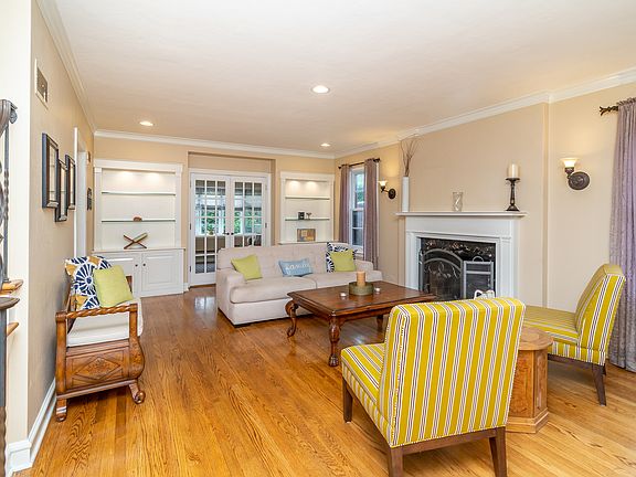 Pretty Colonial full of charm and character. Main level features separate dining room, sunny living room with fireplace opening onto the cozy family room. Updated kitchen with granite countertops and stainless steel appliances leads to mudroom and attached garage. Second level with 3 large bedrooms. Hardwood throughout! Finished basement with rec room, office space and laundry with plenty of storage. Big backyard with two patios, fire pit and large storage area off garage. Flood control system too! All located on a pretty and quiet block. A must see!