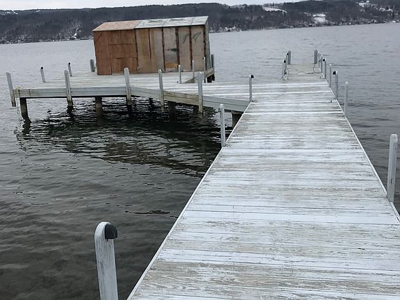 Keuka Lake! This classic cottage, settled on half an acre of dead level perfection, is located on Keuka Lake's east side. 100 ft of level shale beach with oversized permanent dock. This adorable cottage has so much potential nestled within the trees on the huge grassy lot and is located way off the main road on a private drive on Marlena Point. Detached garage, tons of parking, and that coveted Keuka location! This rare opportunity is a location you need to see!