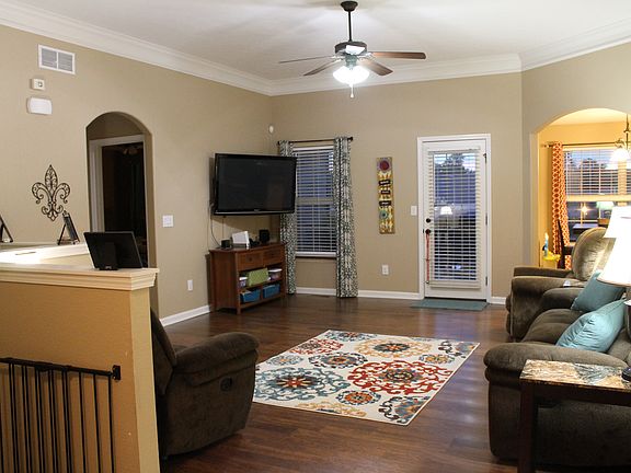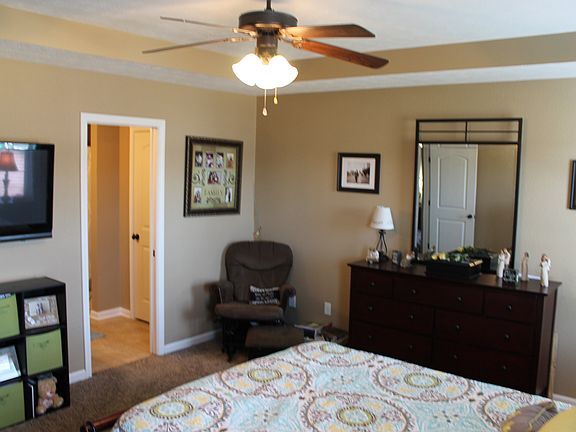 This split floor plan is very open with arched doorways and rounded corners on the main floor. The home has tile flooring in both main floor bathrooms, laundry room, foyer and kitchen. The kitchen has quality cabinets with all the appliances including a oven, microwave, dishwasher, and a side by side refrigerator with plenty of counter space. Enjoy a covered deck located right outside of the kitchen/great room area. The great room features 10 foot ceilings. There are three spacious bedrooms located on the main floor. The master suite is large and includes a walk-in closet and full bath. The house has a gorgeous finished walkout basement, which includes a full bath, open living space, and bedroom. The basement has beautiful epoxy flooring and is spacious for entertaining guests.